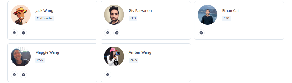 Zypher Network, deneyimli bir ekip tarafından yönetilir: Jack Wang (Kurucu Ortak), Giv Parvaneh (CEO), Ethan Cai (CPO), Maggie Wang (COO) ve Amber Wang (CMO). Bu ekip, AI ve blokzincir teknolojilerinde uzmanlıklarıyla, Zypher’in güvenilir AI ekosistemini inşa etme vizyonunu hayata geçiriyor.