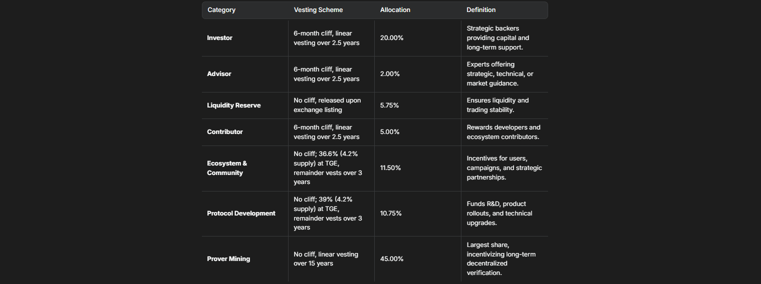 • %5: Katkıda Bulunanlar (6 ay kilit, 2.5 yıl lineer dağıtım)